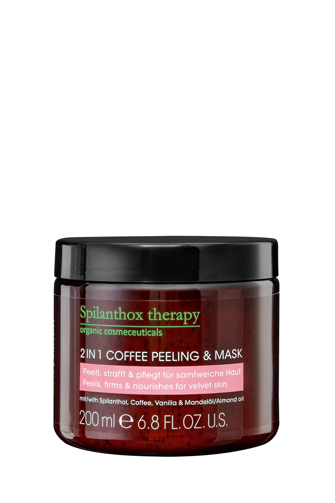 Straffende, pflegende Peeling-Maske für Gesicht & Körper. Echtes Kaffeepulver entfernt überflüssige Hautschüppchen, feines Mandelöl schenkt eine streichelzarte Haut. Vitamin E schützt die Haut, Spilanthol und Koffein lassen sie straffer wirken. Eine Pflege, die die Sinne berührt und für babyweiche Haut sorgt.