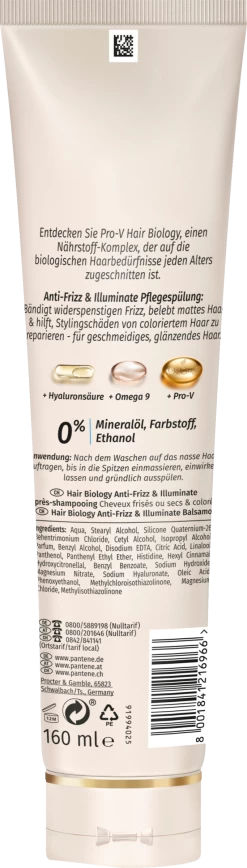 Rinse Out Conditioner: Massiere eine haselnussgroße Menge in die feuchten Längen und Spitzen. 2-3 Minuten einwirken lassen und mit lauwarmem Wasser ausspülen.