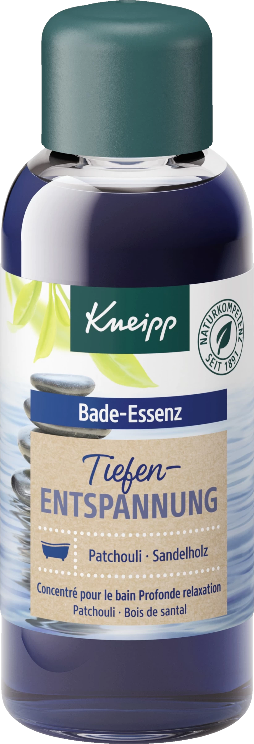 Die Kneipp® Bade-Essenz Tiefenentspannung mit natürlichem ätherischem Patchouliöl und wertvollem Sandelholzextrakt führt Sie in eine tiefe Entspannung und lässt Ihren Geist zur Ruhe kommen. Verhilft nachweislich zu tiefer Entspannung und innerer Ruhe*. Patchouli löst Anspannungen und hilft bei innerer Unruhe. Sandelholz ist für seine ausgleichende und entspannende Wirkung bekannt. Im Zusammenspiel mit der wohltuenden Wirkung warmen Wassers entfalten die ätherischen Öle in ihrer Kombination ihre natürliche Duftwirkung.