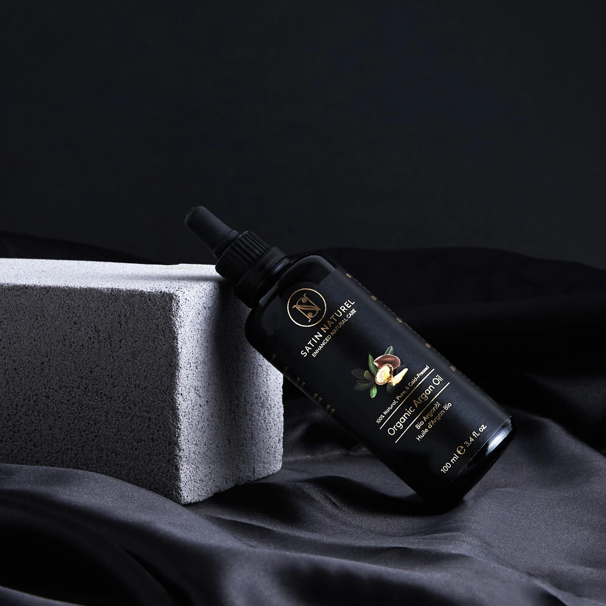 100% pures Arganöl – ein einziger Inhaltsstoff, der dem Haar seinen Glanz zurückgibt und es mit wertvollem Vitamin E vor brüchige Spitzen bewahrt.
