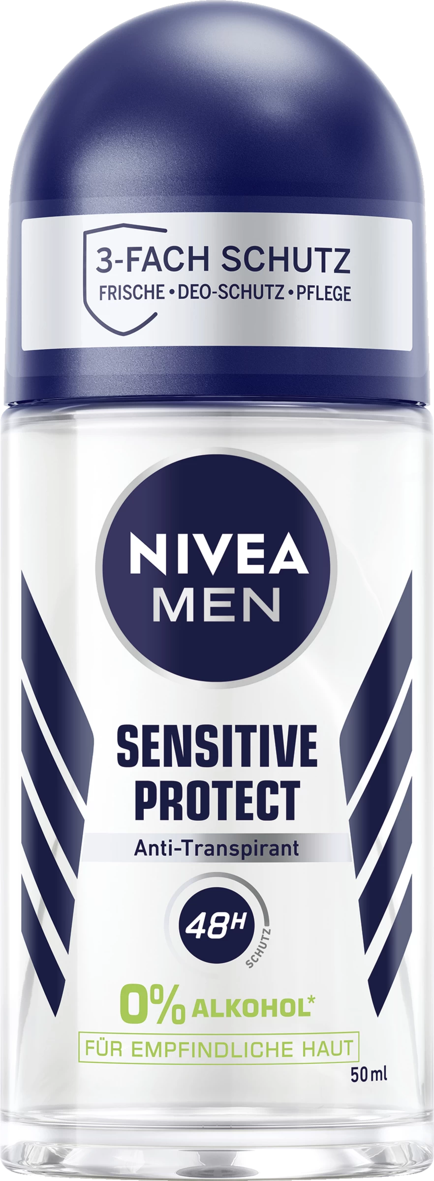 NIVEA MEN Sensitive Protect Deo Roll-On schützt empfindliche Haut 48 Stunden lang vor Achselnässe und Körpergeruch – Ohne Alkohol. Reizungen, Hautrötungen oder Brennen wird mit Hilfe des wertvollen Kamillenextrakts wirksam vorgebeugt. Der angenehme Duft kombiniert mit der bewährten sanften NIVEA Pflege.