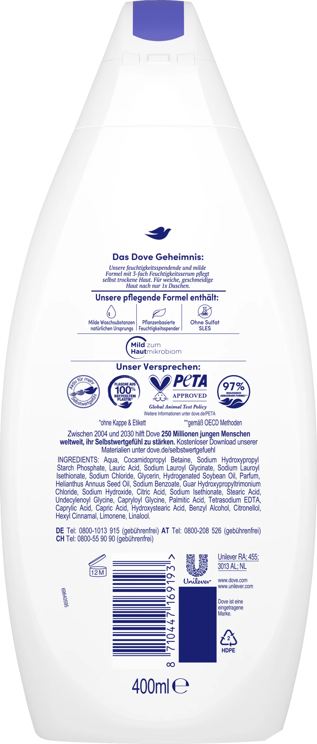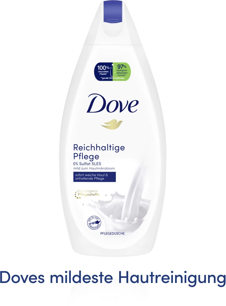 Dove Duschgel Reichhaltige Pflege sorgt für spürbar weichere Haut schon nach der ersten Dusche. Denn wer freut sich nicht über weiche Haut? Wir alle möchten, dass unsere Haut Tag für Tag gesund und gepflegt aussieht, und mit der richtigen Pflegedusche lässt sich das ganz einfach in die Tat umsetzen. Der beste Weg, sich wohl in seiner Haut zu fühlen, besteht darin, sie gleich am Morgen mit der richtigen Pflege zu versorgen. Genau aus diesem Grund haben sie die Dove Pflegedusche Reichhaltige Pflege entwickelt.