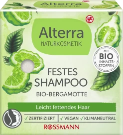 Das Alterra Feste Shampoo Bio-Bergamotte & Bio-Olive reinigt das Haar sanft und schonend.