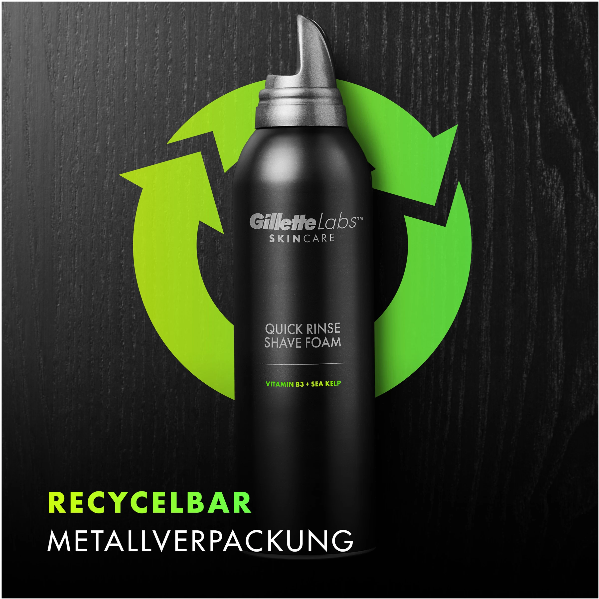 Gillette Labs Schnell Abzuwaschender Rasierschaum lässt sich Dank seiner leichten Formel einfach sauber abwaschen. Dieser Rasierschaum wird ohne Alkohol oder Farbstoffe hergestellt und hilft, die Haut während der Rasur zu schützen.