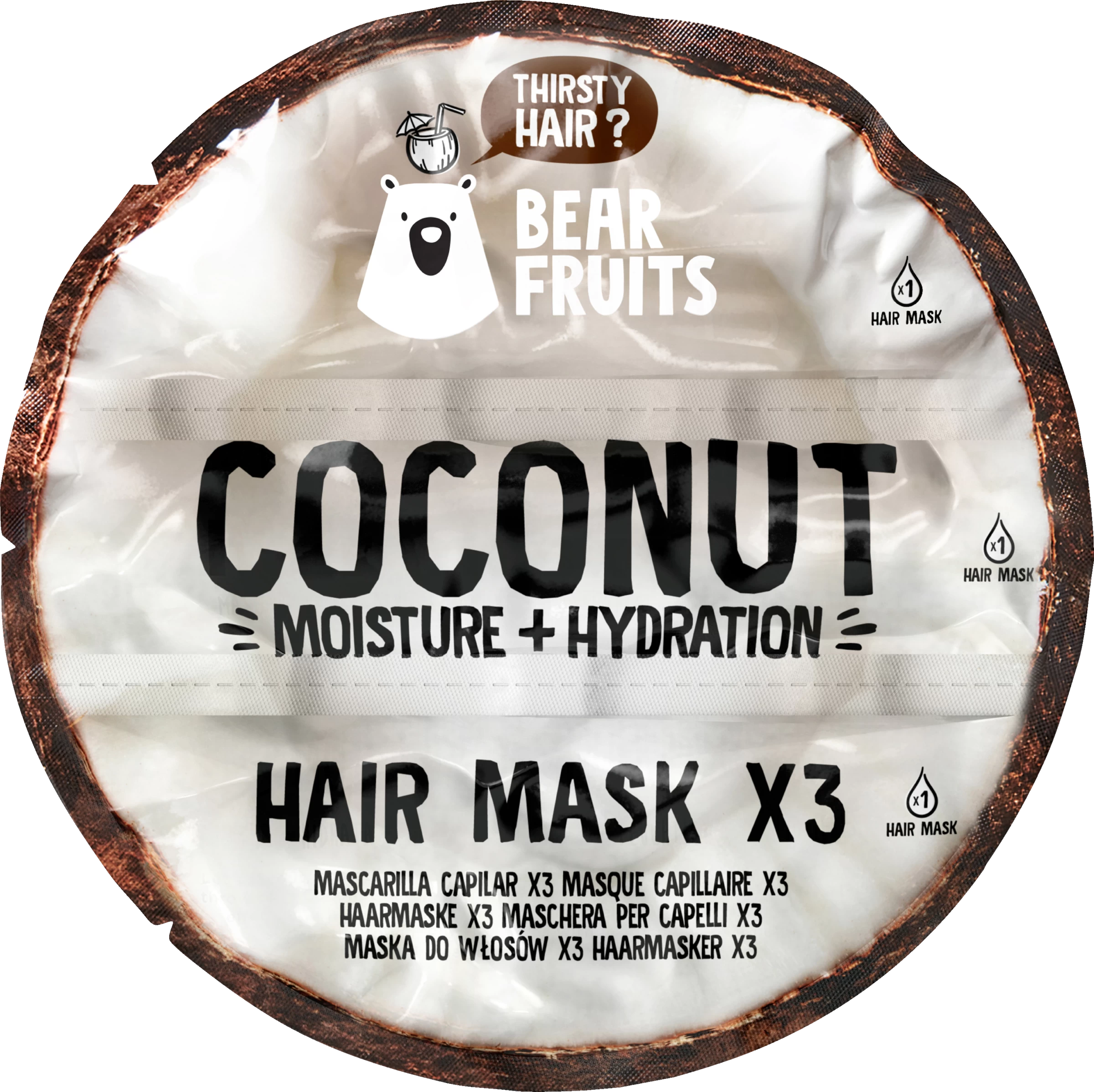 Jetzt unser Bear Fruits Coconut Nachfüllpack für 3 Anwendungen entdecken. Die Bear Fruits Feuchtigkeit + Hydration Haarmaske mit Kokosnuss-Extrakt versorgt das Haar bis in die Spitzen mit Feuchtigkeit und verleiht einen weichen und glänzenden Look. Lächeln, während die Haarmaske das Haar verwöhnt. Für beste Ergebnisse zusammen mit einer Bear Fruits Haube verwenden. Bear Fruits ist von PETA als cruelty-free zertifiziert! Außerdem sind unsere Kokosnuss-Haarmasken vegan.