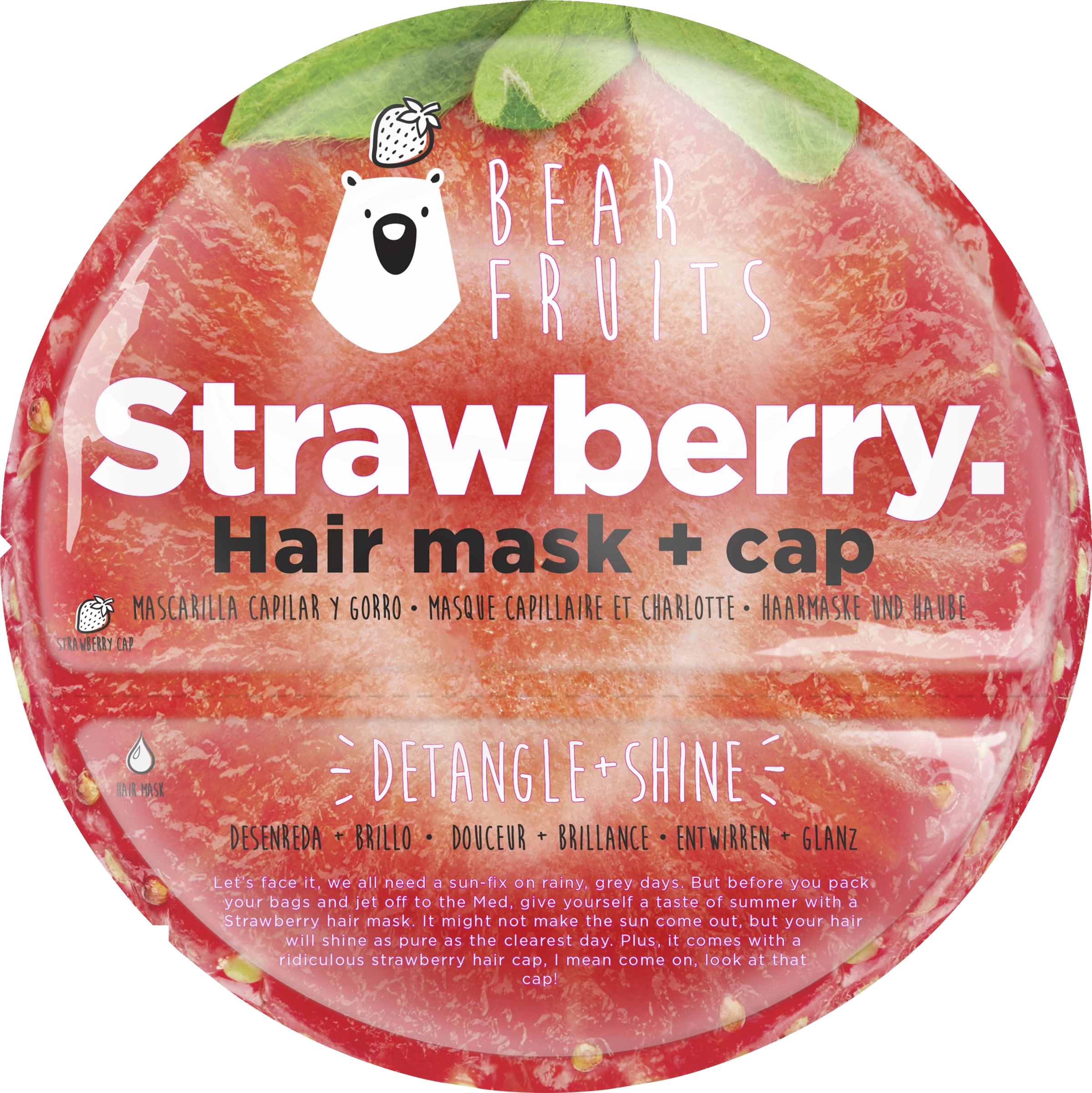 Die Bear Fruits Entwirren + Glanz Haarmaske mit Erdbeer-Extraken bringt das Haar zum glänzen, wie an einem strahlenden Sommertag. Einfach die Haube aufsetzen und lächeln, während die Haarmaske das Haar verwöhnt.