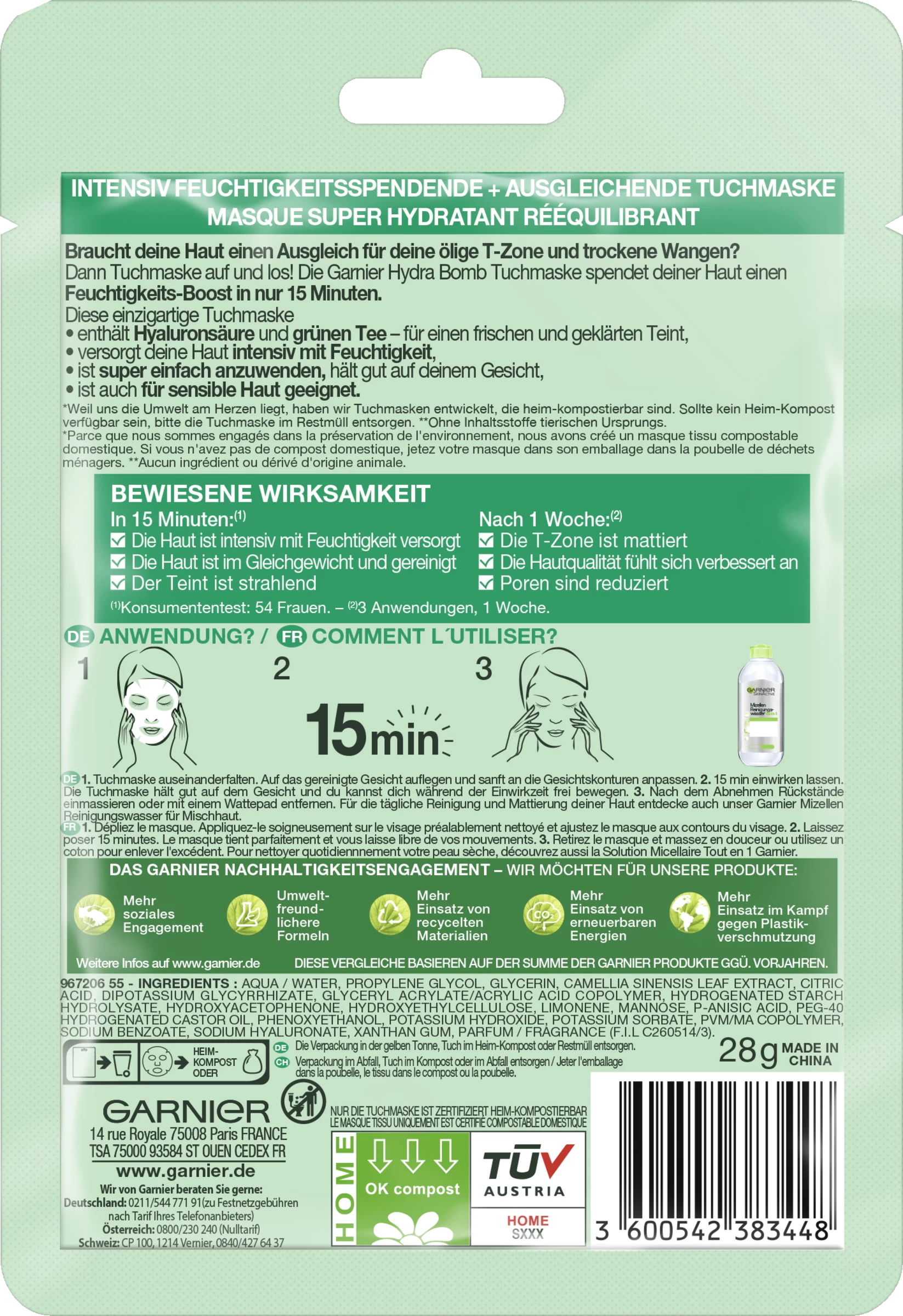 Braucht deine Haut einen Ausgleich für deine ölige T-Zone und trockene Wangen? Dann Tuchmaske aufund los! Die Garnier Hydra Bomb Tuchmaske spendet deiner Haut einen Feuchtigskeits-Boost in nur 15 Minuten.Diese einzigartige Tuchmaske
