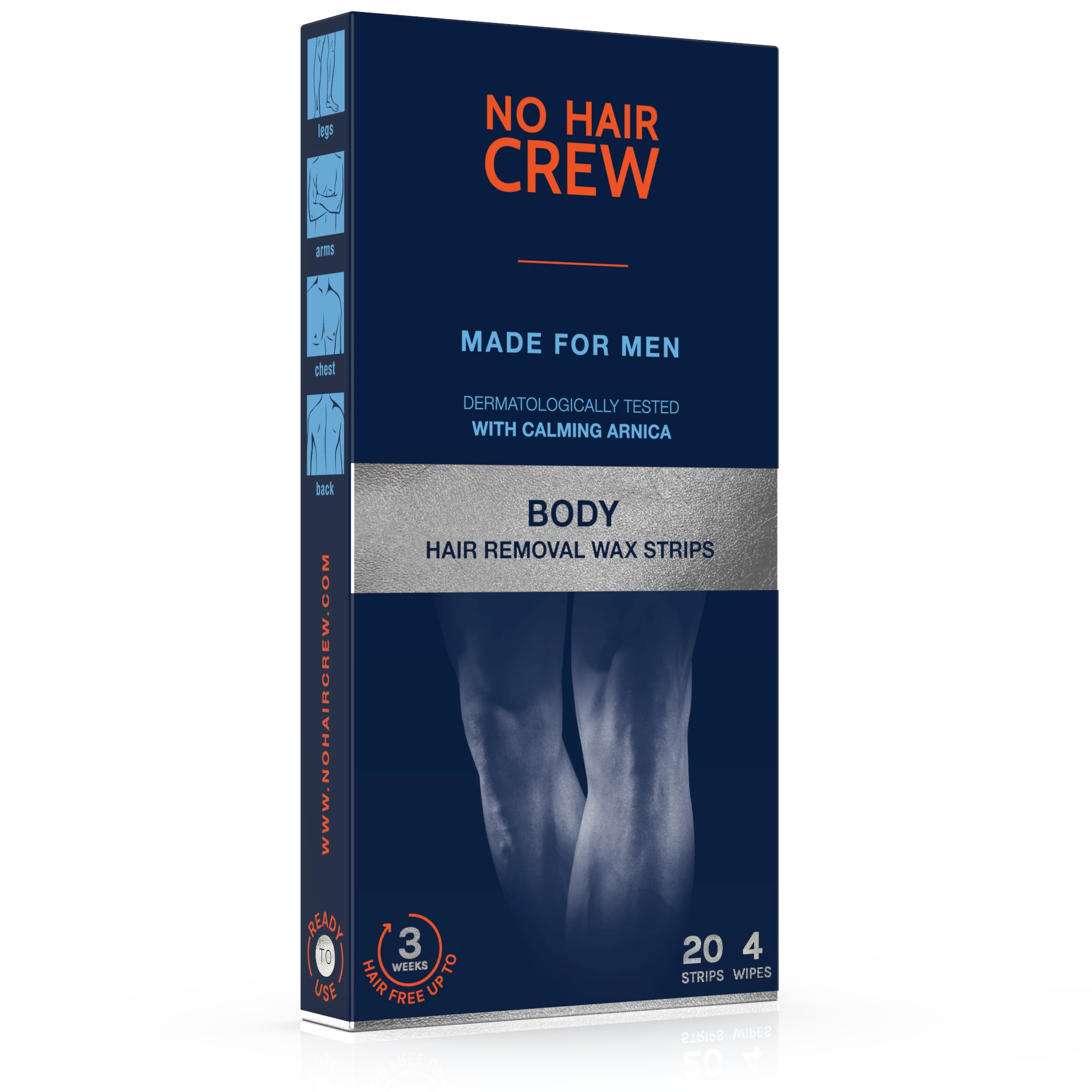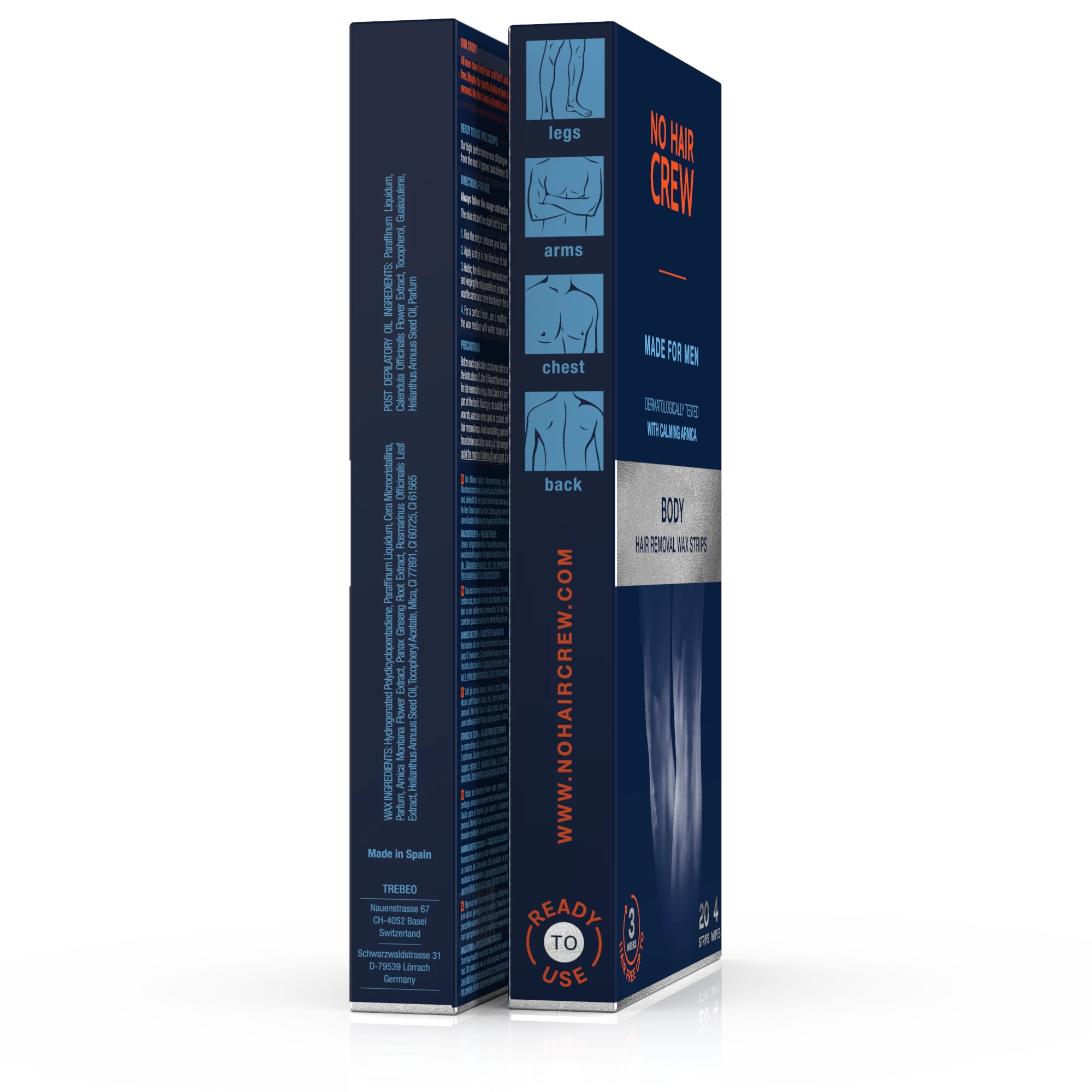 Die No Hair Crew Kaltwachsstreifen Körper für Männer sorgen für glatte Haut für bis zu 3-4 Wochen. Darüber hinaus wachsen die Haare durch ein regelmäßiges Entfernen mit Wachs immer feiner nach. Sie sind ideal für Beine, Arme, Brust und Rücken. Dabei wurden sie speziell für dickeres und dichteres Männerhaar entwickelt. Sie sind ultra effektiv und funktionieren auch bei kürzerem Haar. Die Kaltwachsstreifen sind vegan und nicht an Tieren getestet.
