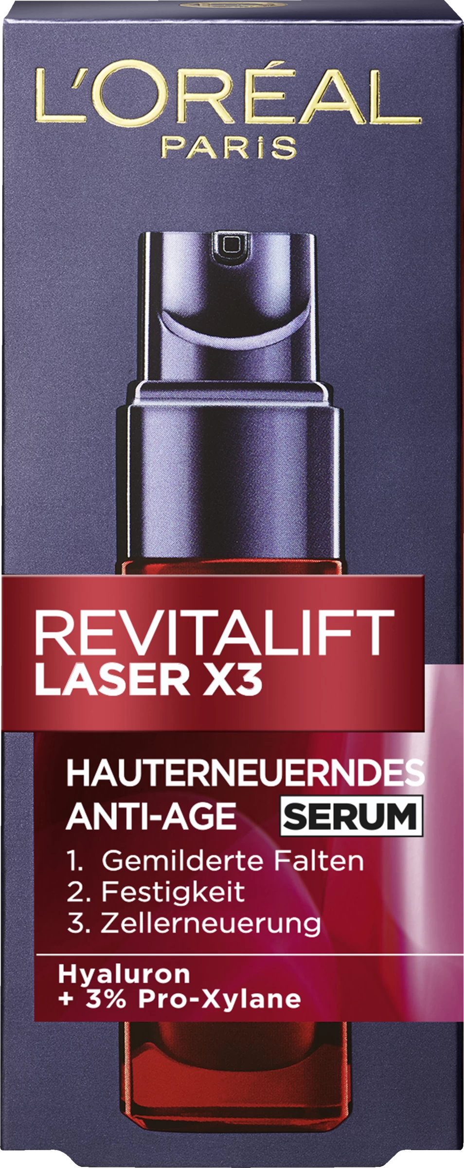 Entdecken Sie die tiefenwirksame Anti-Age Kraft: Revitalift Laser X3 Serum ist angereichert mit einer hohen Konzentration an Wirkstoffen für eine 3-fach Anti-Age Wirkung. L’Oréal Revitalift Laser X3 hochkonzentriertes Anti-Age Serum mildert sanft und sichtbar Falten und verfeinert nach und nach die Hautstruktur, indem sie nachhaltig gepflegt und wieder aufgebaut wird, so dass sie frisch und belebt erscheint.