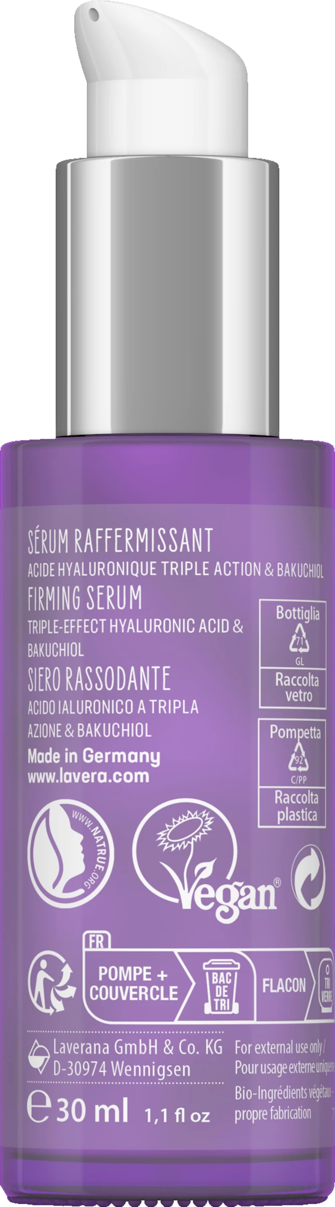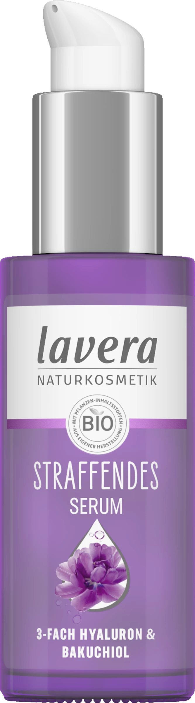 Erlebe das lavera Gefühl spürbar strafferer Haut. Das straffendes Serum mit 3-fach-Hyaluron & dem Power-Wirkstoff Bakuchiol wirkt dem Alterungsprozess der Haut auf natürliche Weise entgegen. Die hochwirksame und gut verträgliche Formel stimuliert nachweislich das hauteigene Kollagensystem der Haut und mindert Falten. Spüre, wie die zarte Textur unmittelbar mit deiner Haut verschmilzt und sie mit intensiver Feuchtigkeit versorgt – für sofort straffere, strahlend schöne Haut und ein unvergleichlich gepflegtes Gefühl.