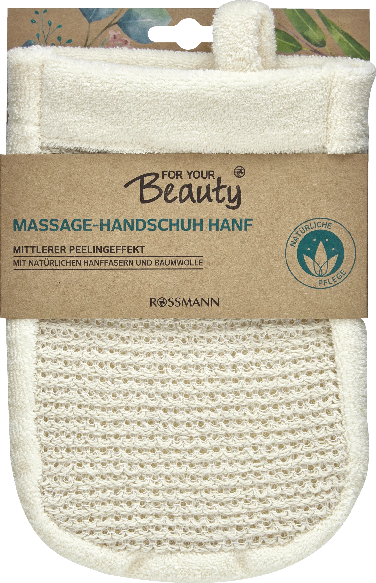 Der for your Beauty Massage-Handschuh mit Hanffasern, zeichnet sich durch zwei unterschiedliche Materialseiten aus. Die gröbere Peelingseite besteht zu 100% aus Hanffasern, diese peelt Ihre Haut wohltuend und entfernt sanft abgestorbene Hautschüppchen. Die weichere Rückseite besteht zu 90% aus Baumwolle und dient zur sanften Reinigung Ihrer Haut. Dank der Handschuhanwendung kann die Intensität des Peeling und der Massage ideal auf die eigenen Bedürfnisse angepasst werden.