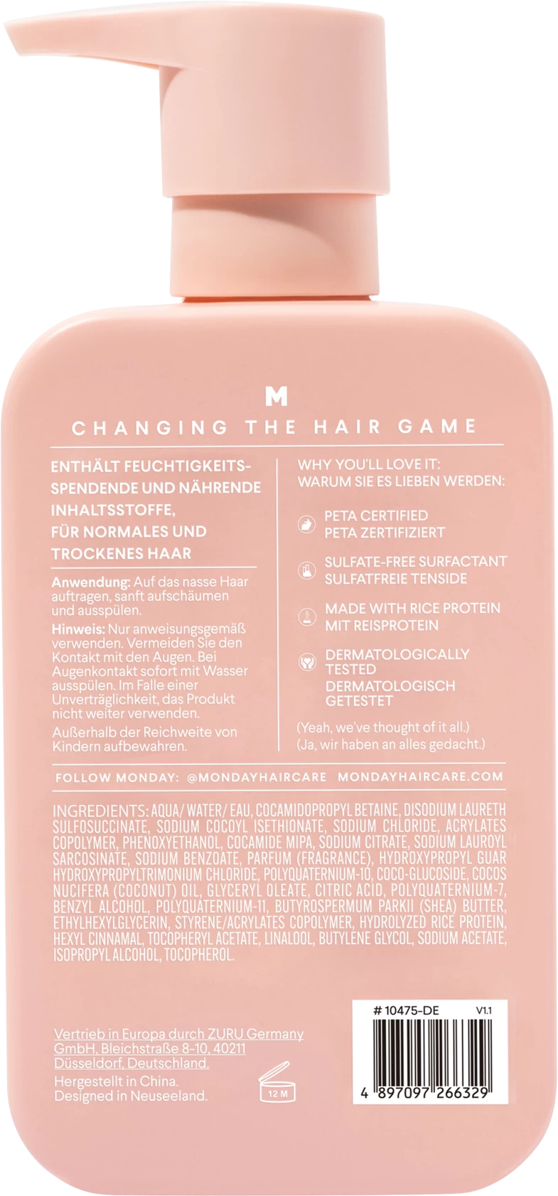 Das Credo von MONDAY ist, dass niemand für hochwertige Haarpflege, die zudem PETA-zertifiziert und sulfatfrei ist, mehr bezahlen muss. Die Formeln der Marke konzentrieren sich auf natürliche Inhaltsstoffe. Die Flaschen sind zu 100 % recycelbar, um den CO2-Fußabdruck zu minimieren und Müll zu reduzieren.