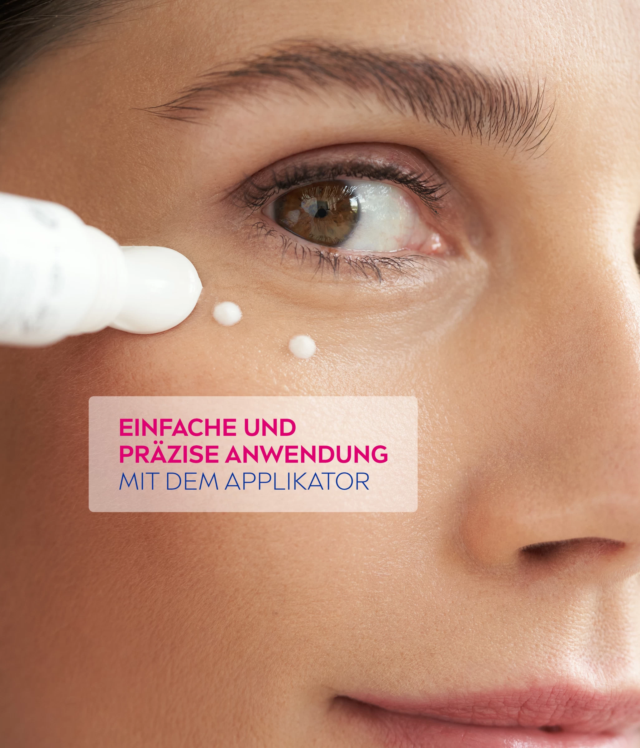 Täglich morgens und abends auf die gereinigte Augenpartie auftragen. Massieren Sie die Formel sanft mithilfe des Applikators ein.