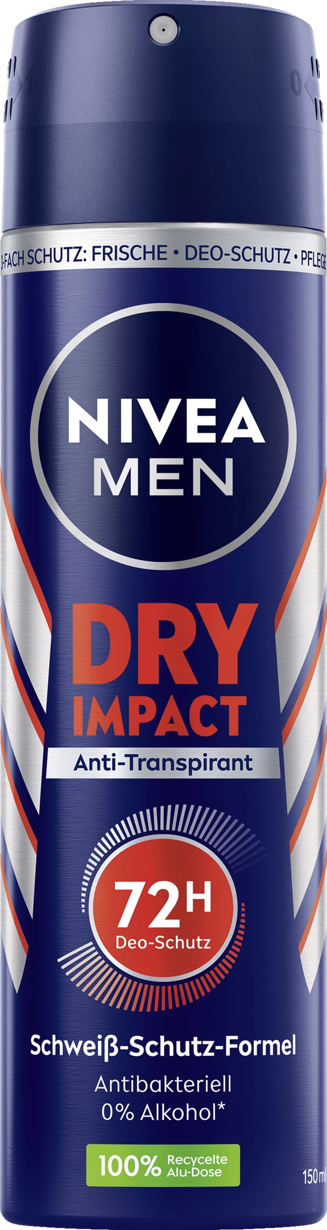 NIVEA MEN Dry Impact Deodorant Spray bietet zuverlässigen Anti-Transpirant-Schutz – 48 Stunden lang. Die hocheffektive Dual-Active-Formel mit zwei besonders wirksamen Anti-Transpirant-Inhaltsstoffen wirkt effektiv gegen Achselnässe, hält die Achseln angenehm trocken und verhindert so unangenehmen Körpergeruch. Das Spray bietet einen maskulinen, frischen Duft und pflegt die Haut. Hautverträglichkeit klinisch bestätigt. NIVEA Men Dry Impact Spray 150 ml.