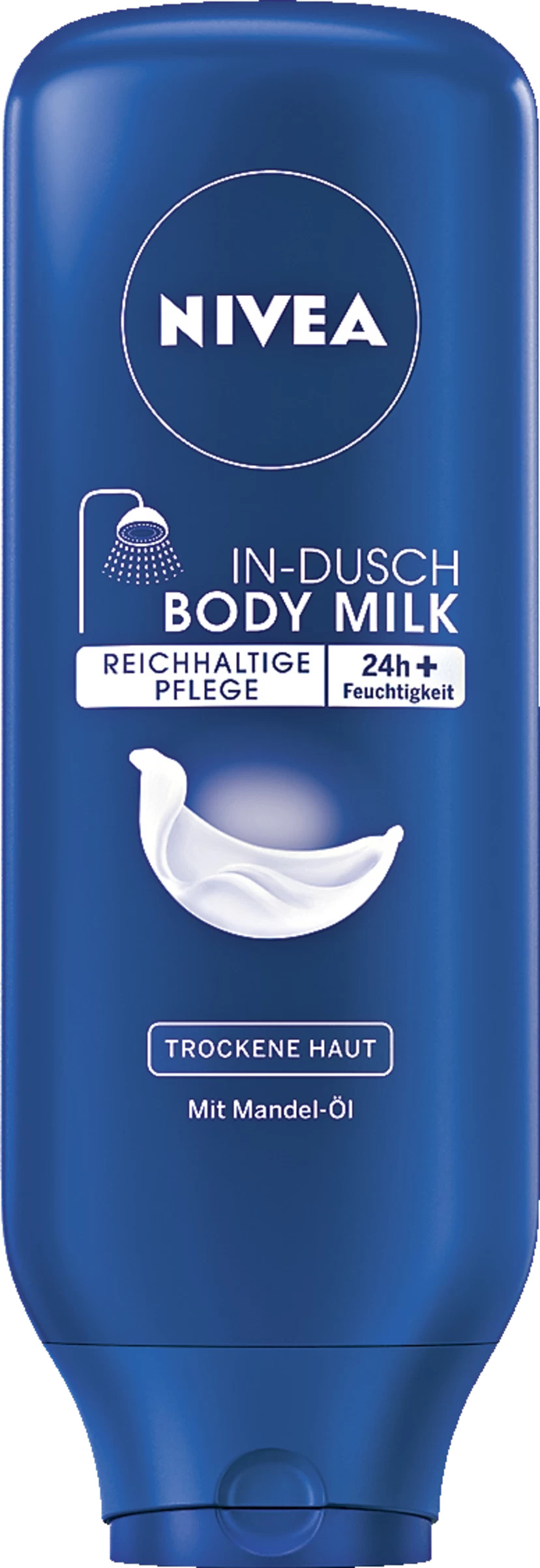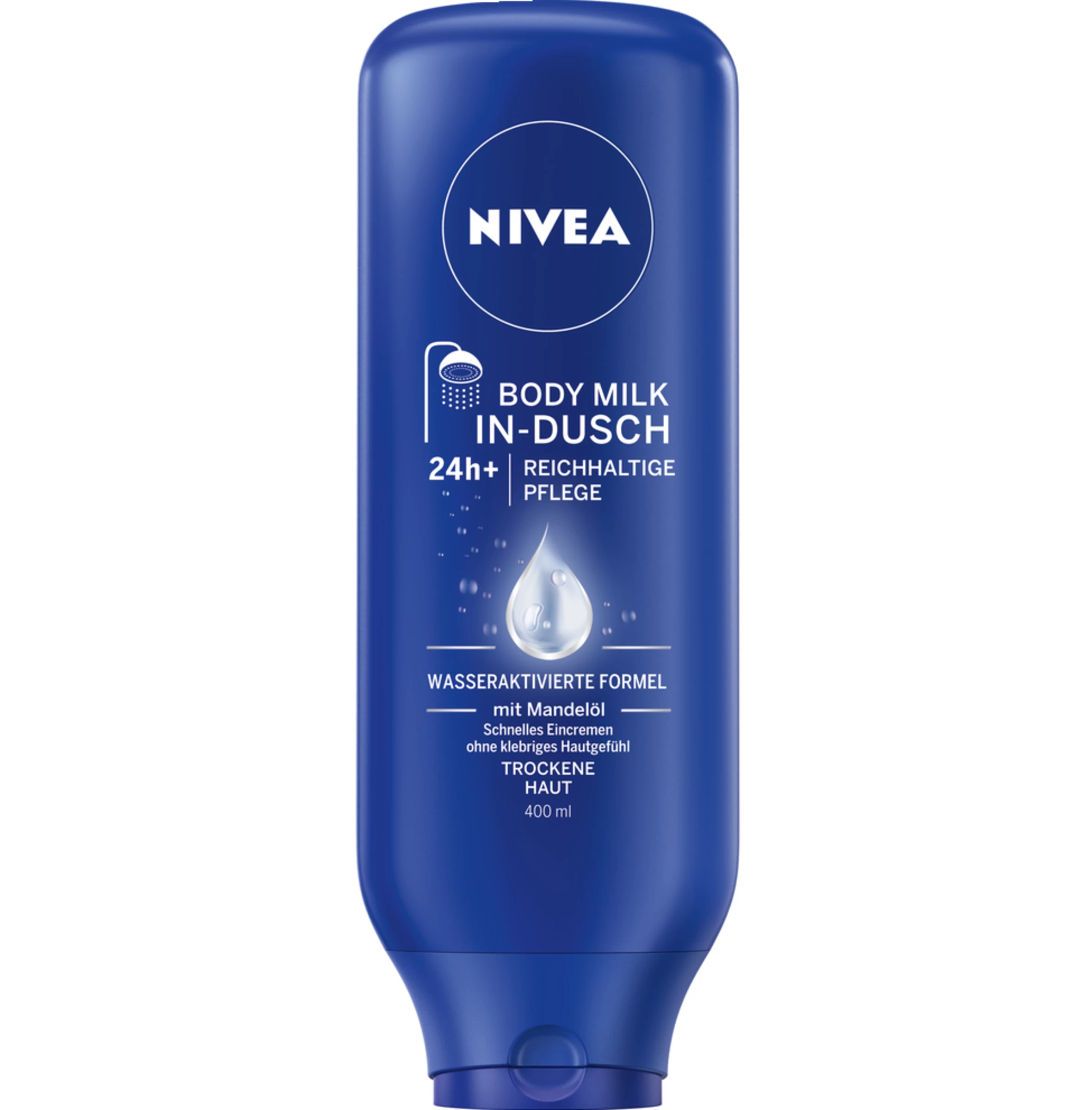 Die pflegende In-Dusch Body Milk spendet Ihrer Haut sekundenschnell Feuchtigkeit und zieht schnell ein. Die einzigartige – durch Wasser aktivierte – Formel verleiht ein geschmeidiges und gepflegtes Hautgefühl direkt nach der Dusche. Zusätzliches Eincremen mit einer normalen Body Milk ist nicht mehr nötig: NIVEA In-Dusch Body Milk.