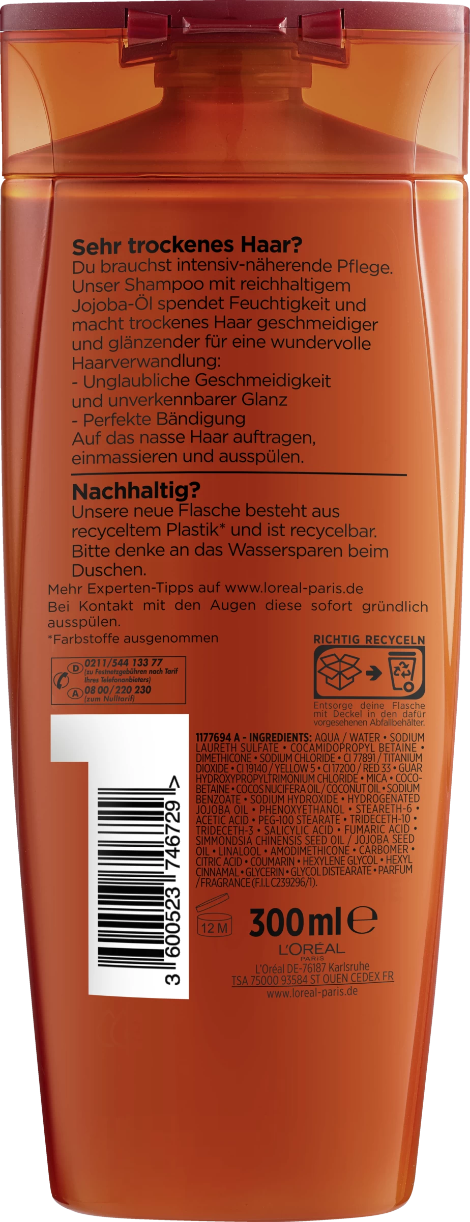 Unser intensives Pflegeshampoo eignet sich optimal,um sehr trockenes Haar zu verwandeln. Unsere kraftvolle Formel mit reichhaltigem Jojoba-Öl. Revitalisiert Ihr Haar für intensive Geschmeidigkeit undunverkennbaren Glanz• Glättet Ihr Haar für veredelnde Brillanz• Umhüllt Ihr Haar mit einem unwiderstehlichen Duft