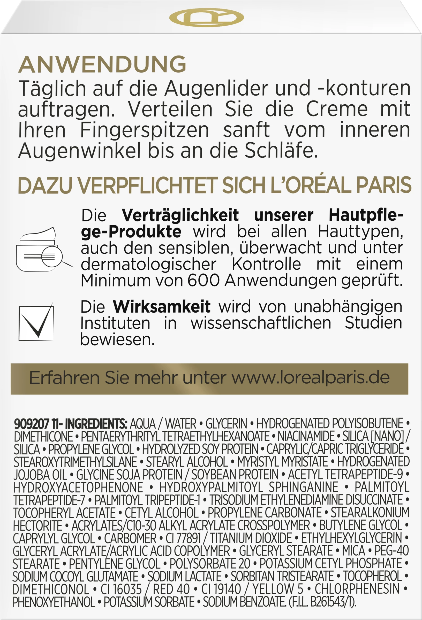 AQUA / WATER • GLYCERIN • HYDROGENATED POLYISOBUTENE • DIMETHICONE • PENTAERYTHRITYL TETRAETHYLHEXANOATE • NIACINAMIDE • SILICA [NANO] / SILICA • PROPYLENE GLYCOL • HYDROLYZED SOY PROTEIN • CAPRYLIC/CAPRIC TRIGLYCERIDE • STEAROXYTRIMETHYLSILANE • STEARYL ALCOHOL • MYRISTYL MYRISTATE • HYDROGENATED JOJOBA OIL • GLYCINE SOJA PROTEIN / SOYBEAN PROTEIN • ACETYL TETRAPEPTIDE-9 • HYDROXYACETOPHENONE • HYDROXYPALMITOYL SPHINGANINE • PALMITOYL TETRAPEPTIDE-7 • PALMITOYL TRIPEPTIDE-1 • TRISODIUM ETHYLENEDIAMINE DISUCCINATE • TOCOPHERYL ACETATE • CETYL ALCOHOL • PROPYLENE CARBONATE • STEARALKONIUM HECTORITE • ACRYLATES/C10-30 ALKYL ACRYLATE CROSSPOLYMER • BUTYLENE GLYCOL • CAPRYLYL GLYCOL • CARBOMER • CI 77891 / TITANIUM DIOXIDE • ETHYLHEXYLGLYCERIN • GLYCERYL ACRYLATE/ACRYLIC ACID COPOLYMER • GLYCERYL STEARATE • MICA • PEG-40 STEARATE • PENTYLENE GLYCOL • POLYSORBATE 20 • POTASSIUM CETYL PHOSPHATE • SODIUM COCOYL GLUTAMATE • SODIUM LACTATE • SORBITAN TRISTEARATE • TOCOPHEROL • DIMETHICONOL • CI 16035 / RED 40 • CI 19140 / YELLOW 5 • CHLORPHENESIN • PHENOXYETHANOL • POTASSIUM SORBATE • SODIUM BENZOATE (F.I.L. B261543/1).