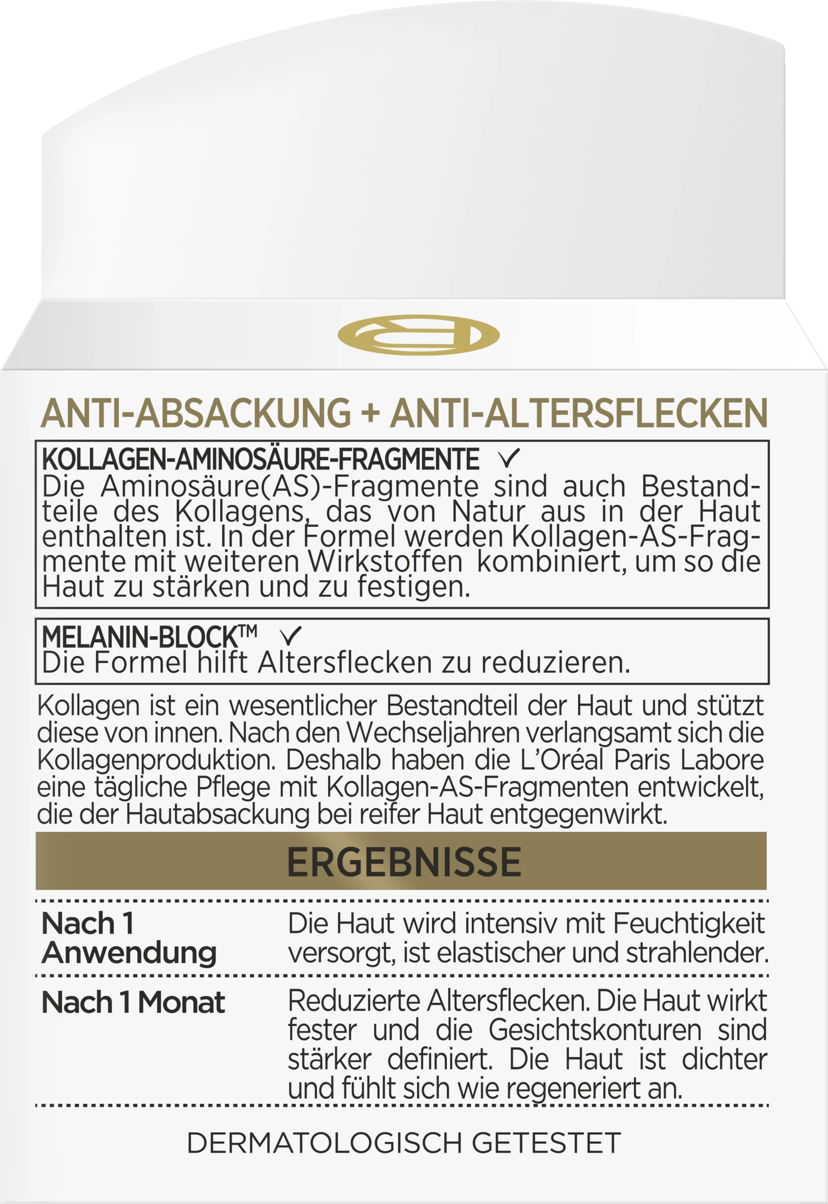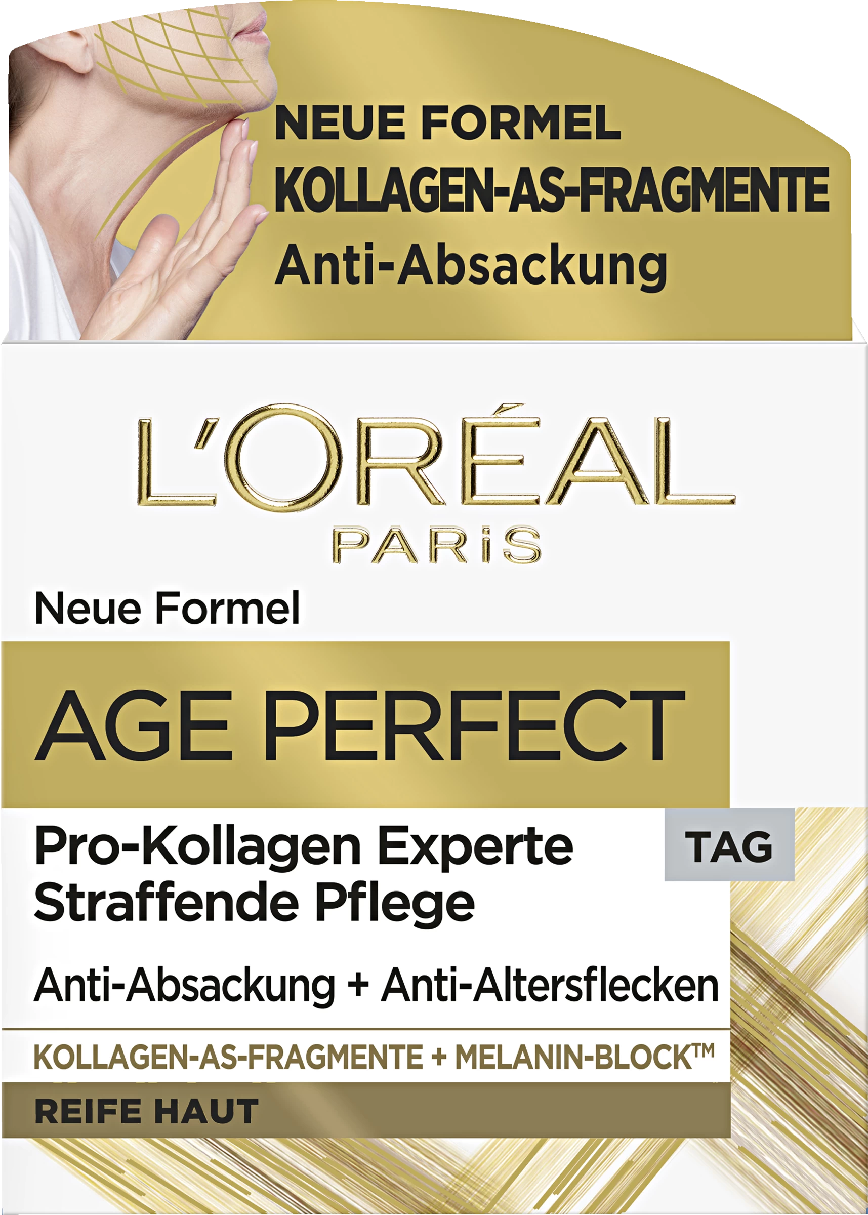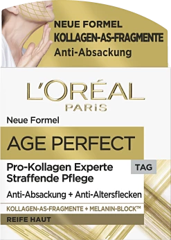 Die Age Perfect Pro-Kollagen Experte Tagescreme mit der wirkungsvollen Kraft von Kollagen-AS-Fragmente wirkt der Hautabsackung entgegen und stimuliert die Stützfasern der Haut für mehr Straffheit.