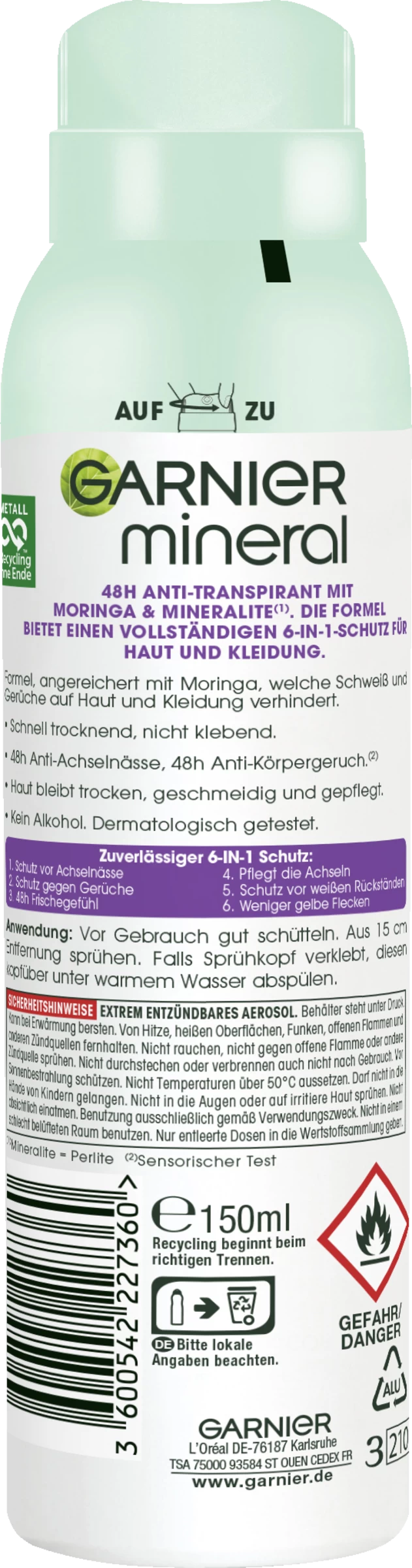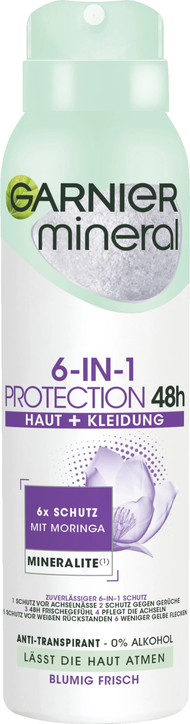 Hitze, Stress, Sport? Für den Garnier Mineral Protection 5 Spray kein Problem. Das Anti-Transpirant für Damen überzeugt mit einer 5-in-1-Wirksamkeit: