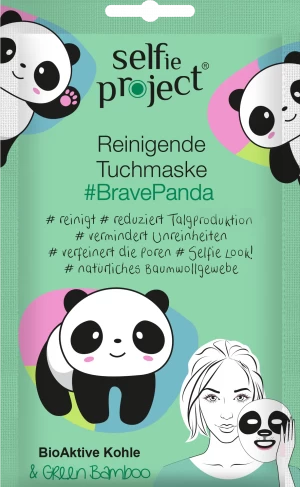 Reinigende Tuchmaske #BravePanda befreit und strafft die Poren, verhindert die Überproduktion von Sebum und stellt das optimale Gleichgewicht der Haut wieder her. Der natürliche Stoff der Tuchmaske passt sich perfekt den Konturen des Gesichts an und erzielt so einen langanhaltenden Pflege-Effekt. BioAktive Kohle – ist ein unschlagbarer wirkstoff im Kampf gegen Hautunreinheiten. Sie hat antibakterielle Eigenschaften, absorbiert Unreinheiten, verengt, reinigt die Poren und mattiert die Haut. Green Bamboo reguliert die Talgsekretion und mattiert die Haut. 91% Inhaltsstoffe natürlichen Ursprungs. 100% vegan.