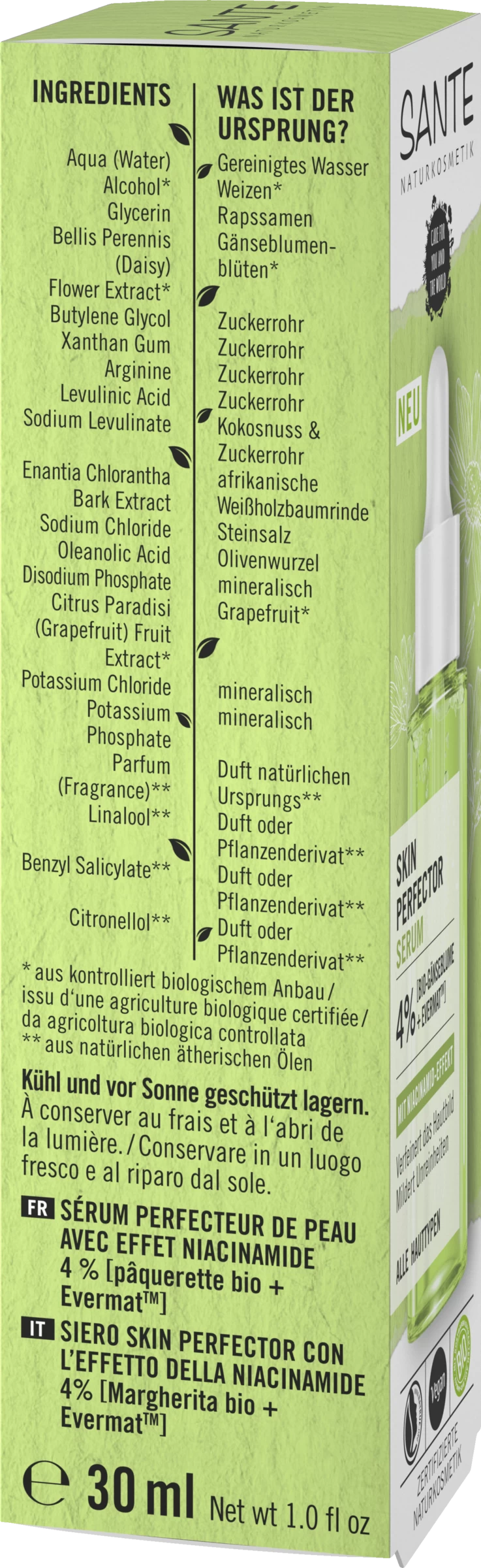 Mildert vergrößerte Poren & bekämpft Unreinheiten. Reguliert Talgproduktion & mattiert. Verfeinert das Hautbild & lässt es ebenmäßiger wirken. Stärkt die Hautschutzbarriere. Gute Verträglichkeit, selbst für sensible Haut Für verfeinerte, ebenmäßigere Haut. Bio-Gänseblümchen Extrakt: Sorgt für einen gleichmäßigen Hautton & einen strahlenden Teint. EvermatTM: Patentierter Wirkstoff Komplex, welcher nachweislich die Poren verfeinert & für ein mattiertes Hautbild sorgt.