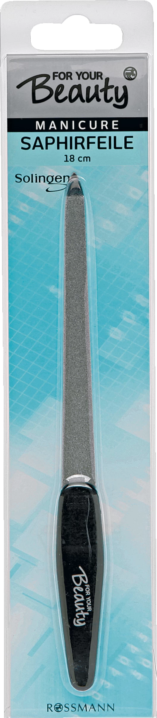 Die Saphirfeile sorgt durch die fest verankerten Saphirkörner für gepflegte Nägel. Mit der groben Raspelung feilen Sie vor und glätten dann mit der feinen Seite sanft nach.