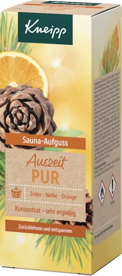 Der aromatisch entspannende Kneipp® Sauna-Aufguss Auszeit Pur enthält wertvolle, sorgfältig ausgewählte ätherische Öle in bewährter Kneipp-Qualität. Auszüge von Birke runden die wohltuende Wirkung des Kneipp® Sauna-Aufgusses ab und machen ihn zur wirkungsvollen Ergänzung regelmäßiger Saunagänge.
