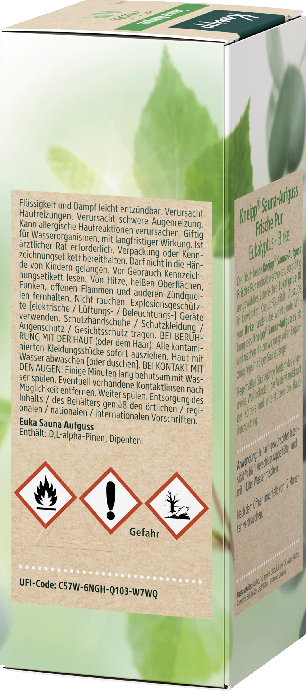 Enthält: D,L-alpha-Pinen, Dipenten. UFI-Code: C57W-6NGH-Q103-W7WQ