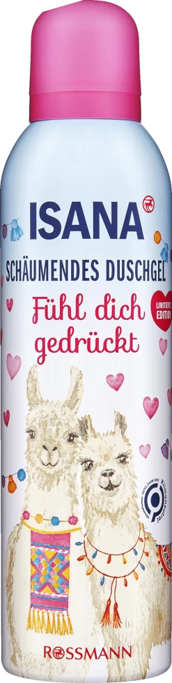 ISANA SCHÄUMENDES DUSCHGEL FÜHL DICH GEDRÜCKT mit seiner cremig-zarten Textur reinig sanft und sorgt für ein rundum gepflegtes Hautgefühl. Tauche ein in die Welt von den süßen Alpakas und begib dich auf eine aufregende Gedankenreise nach Südamerika. Lass dich dabei von dem süßen Wohlfühl-Duft nach Jasmin und Freesie und pflegendem Kokosöl verwöhnen. Die Wohlfühlformulierung inspiriert deine Sinne und schenkt dir ein ganz besonderes Duscherlebnis.