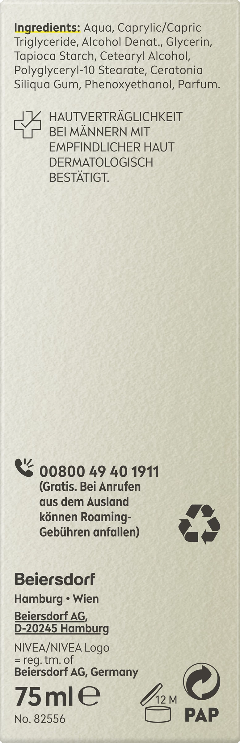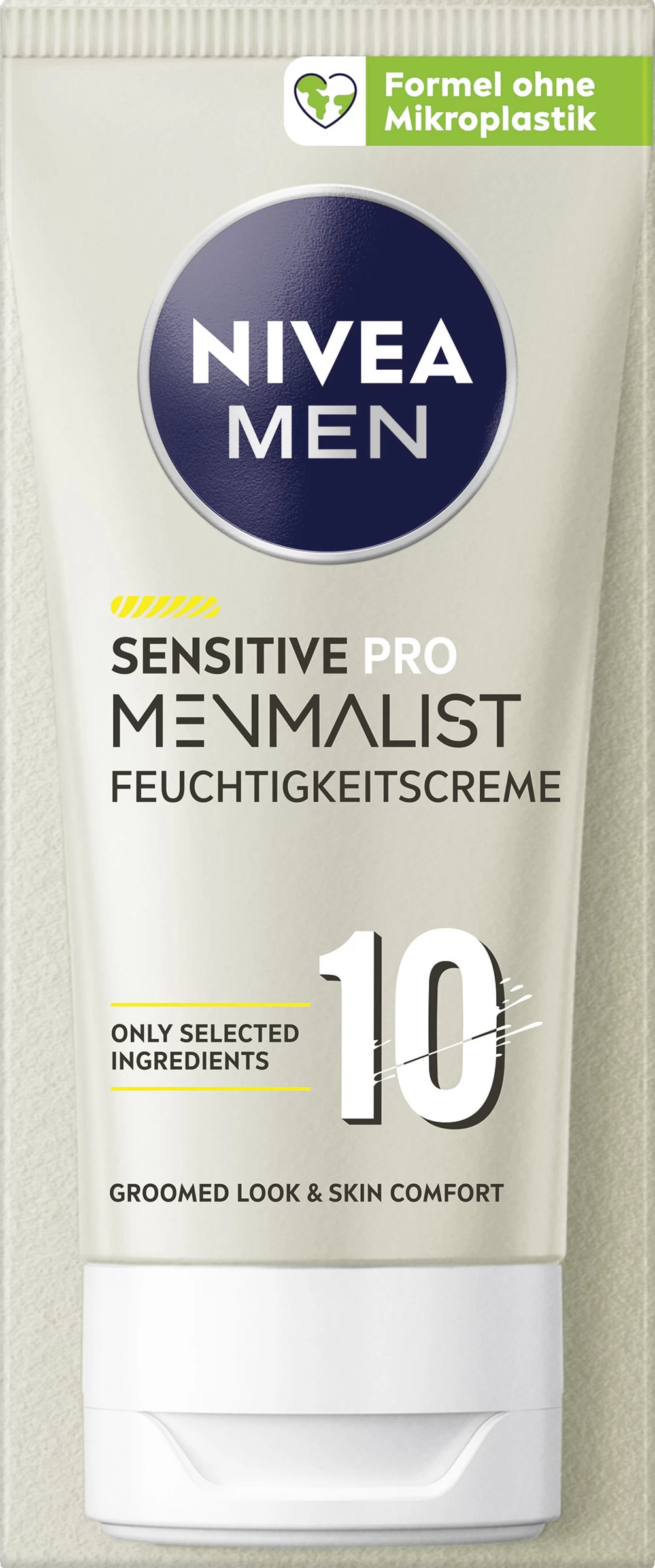Die NIVEA MEN Sensitive Pro Menmalist Feuchtigkeitsceme spendet deiner Haut 24h Feuchtigkeit und beruhigt sie sofort. Alles, was du für ein gepflegtes Aussehen und ein gutes Hautgefühl benötigst, sind diese 10 ausgewählten Inhaltsstoffe. 98% der Creme-Bestandteile haben einen natürlichen Ursprung. Durch die innovative, vegane Formel zieht die Gesichtscreme schnell ein und klebt nicht, wodurch sie bestens für Bartträger geeignet ist! Auch die Umwelt fühlt sich dabei gut, da die Feuchtigkeitscreme zu 99% biologisch abbaubar ist und kein Mikroplastik enthält. Zudem ist die Tube recycelbar und die Faltschachtel besteht zu 90% aus recyceltem Material. Die Hautverträglichkeit bei empfindlicher Haut ist dermatologisch bestätigt!