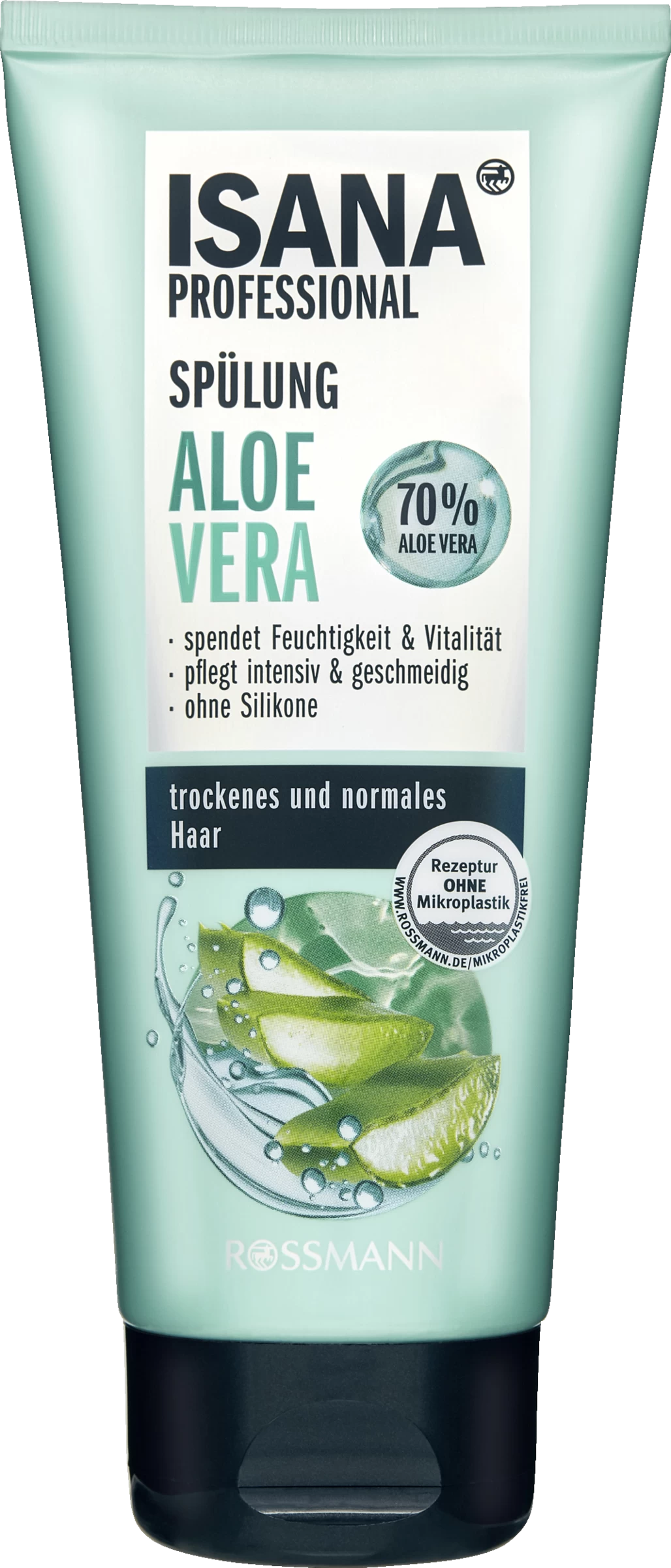 Die ISANA PROFESSIONAL SPÜLUNG ALOE VERA wurde speziell für die Bedürfnisse von trockenem Haar entwickelt. Die Formulierung mit 70% feuchtigkeitsspendender Aloe Vera sorgt für eine milde Reinigung und ist sanft zum Haar und der Kopfhaut. Das Haar gewinnt an Geschmeidigkeit und Vitalität. Für eine gepflegte und natürliche Haarpracht! Diese Rezeptur ist zu 100% ohne Mikroplastik.