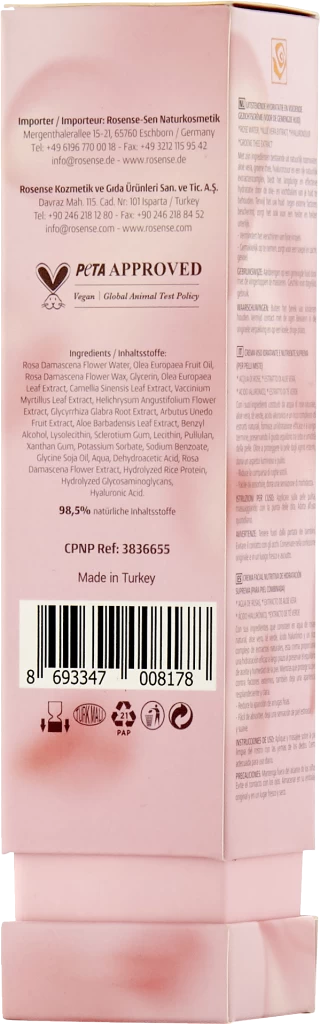 Die speziell für die normale Haut und Mischhaut entwickelte Supreme Hydration Intensiv pflegende Gesichtscreme von Rosense sorgt für ein strahlendes und klares Erscheinungsbild. Die mit natürlichem Rosenwasser, Aloe Vera, grünem Tee, Hyaluronsäure und einem reichhaltigen Komplex aus natürlichen Extrakten angereicherte Formel bewahrt optimal den Fett- und Feuchtigkeitsgehalt der Haut und sorgt so dafür das sie langanhaltend hydratisiert ist. Darüber hinaus schützt die Pflegerezeptur die Haut hervorragend vor äußeren Einflüssen.