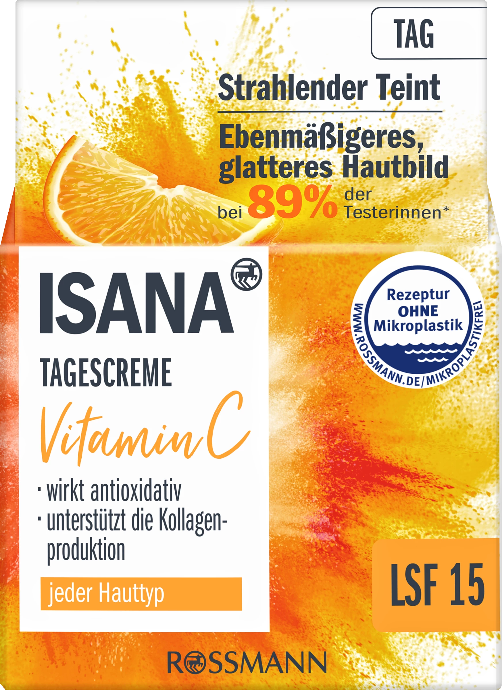 Die ISANA VITAMIN C TAGESCREME mit Grapefruitextrakt und Hyaluronsäure vitalisiert und schützt die Haut und spendet intensiv erfrischende Feuchtigkeit*. Für ein langanhaltend durchfeuchtetes und frisches Hautgefühl und einen strahlenden Teint.