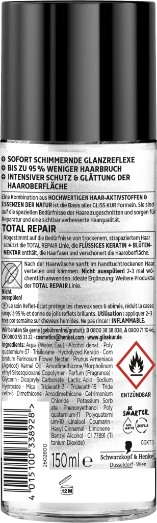 Aqua (Water, Eau)*Alcohol denat.*Polyquaternium-37*Trisiloxane*Hydrolyzed Keratin*Combretum Farinosum Flower Nectar*Prunus Armeniaca (Apricot) Kernel Oil*Amodimethicone/Morpholinomethyl Silsesquioxane Copolymer*Parfum (Fragrance)*Glycerin*Dicaprylyl Carbonate*Lactic Acid*Sodium Hydroxide*Mica*Trideceth-3*Trideceth-15*Trideceth-5*Dimethicone*Amodimethicone*Cetrimonium Chloride*Potassium Sorbate*Phenoxyethanol*Polyquaternium-11*Polyquaternium-10*Linalool*Coumarin*Hexyl Cinnamal*Limonene*Benzyl Alcohol*CI 77891 (Titanium Dioxide).