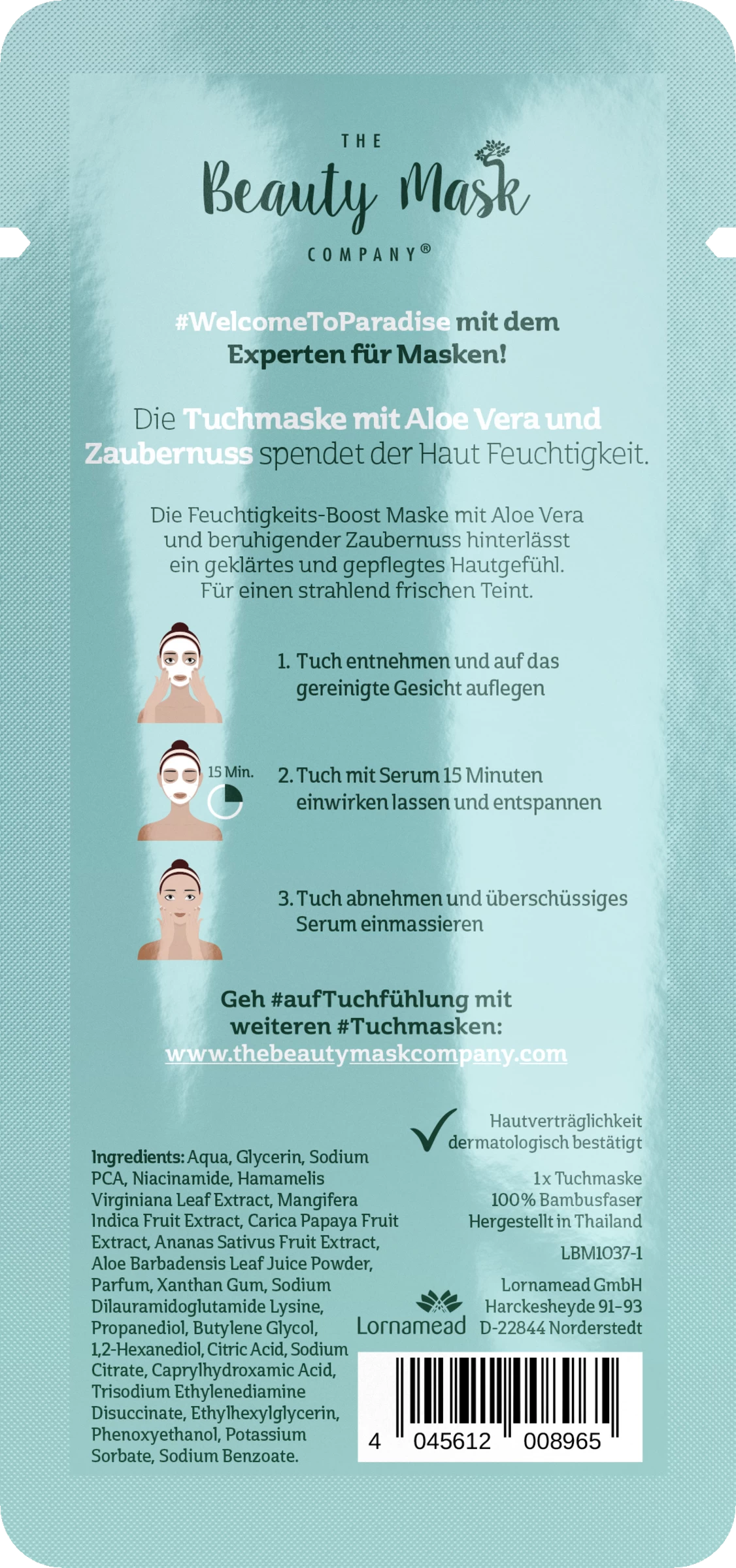 Die Feuchtigkeits-Boost Maske mit Aloe Vera und beruhigender Zaubernuss hinterlässt ein geklärtes und gepflegtes Hautgefühl. Für einen strahlend frischen Teint.